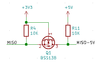 All the 5V signals coming from the MCU can be put through voltage dividers apart from MISO, it needs to be stepped up using a BSS138.