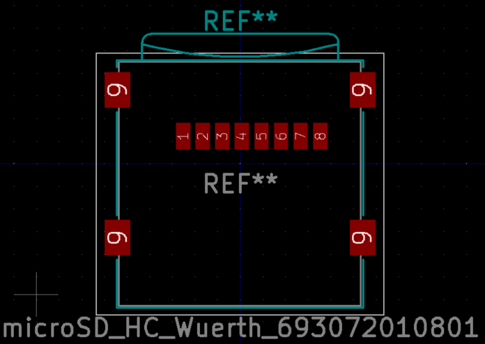 This combination of Wuerth SD Footprint and Molex Flip Out MicroSD mount creates a very small outline on the PCB.